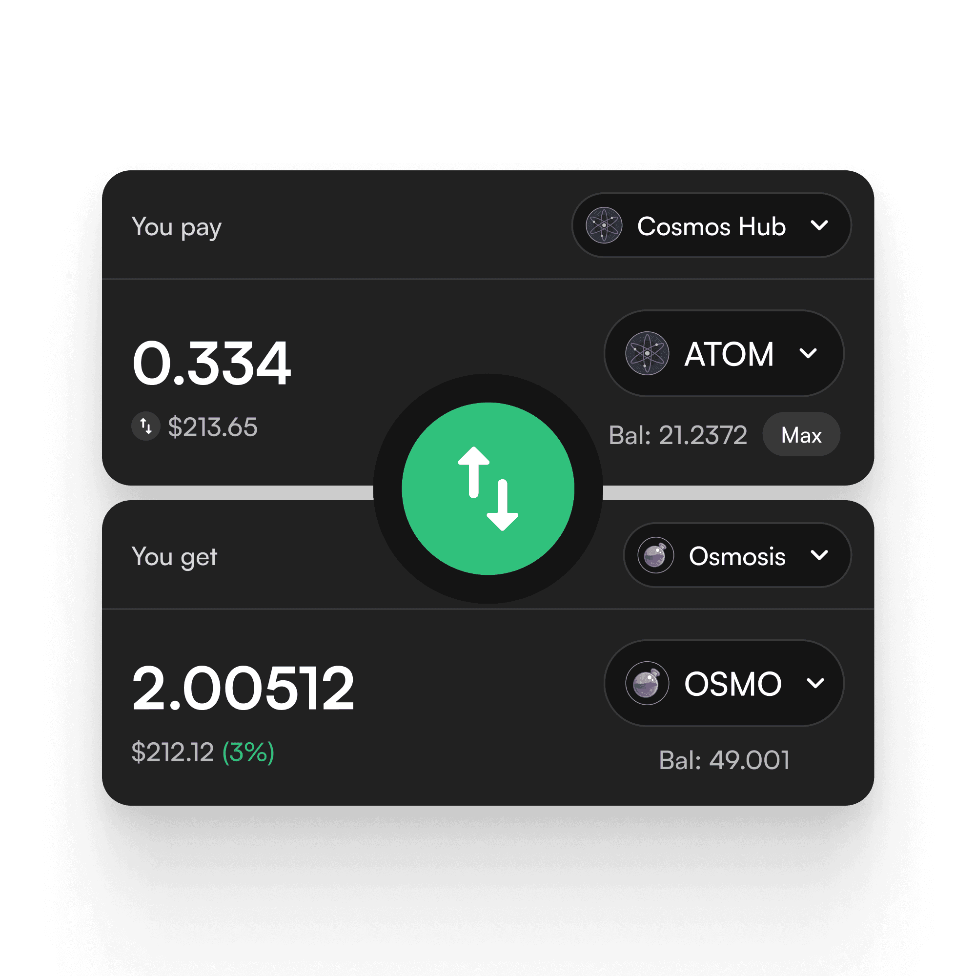 - Built-in staking flows for the Cosmos ecosystem.